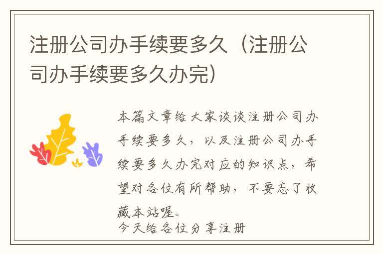 注冊(cè)公司辦手續(xù)要多久(注冊(cè)公司辦手續(xù)要多久辦完)