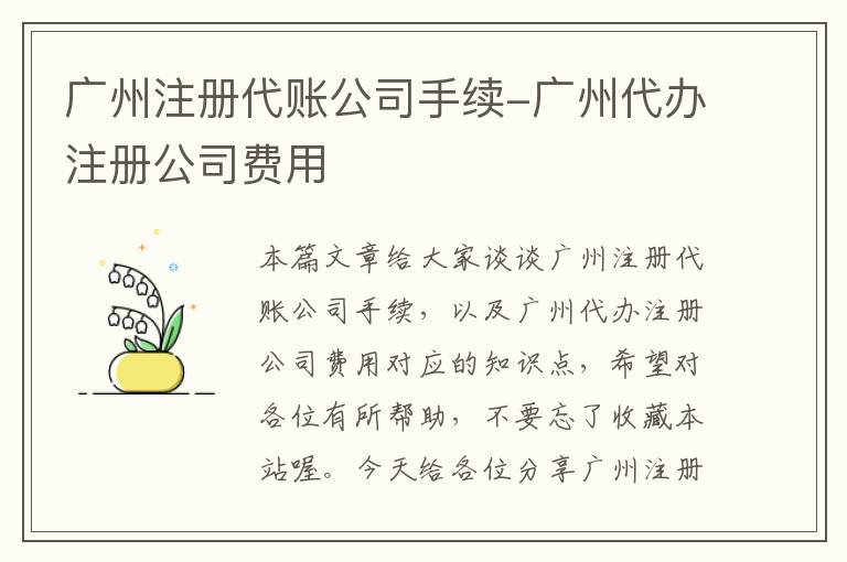 廣州注冊(cè)代賬公司手續(xù)-廣州代辦注冊(cè)公司費(fèi)用